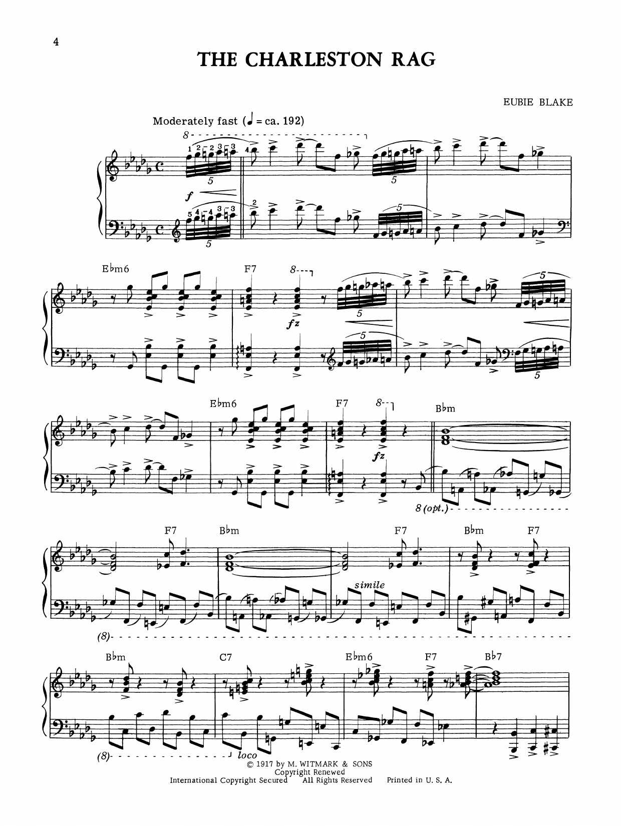 Download or print Eubie Blake The Charleston Rag sheet music, chords and digital score arranged for Piano Solo. This Ragtime score includes 9 page(s).