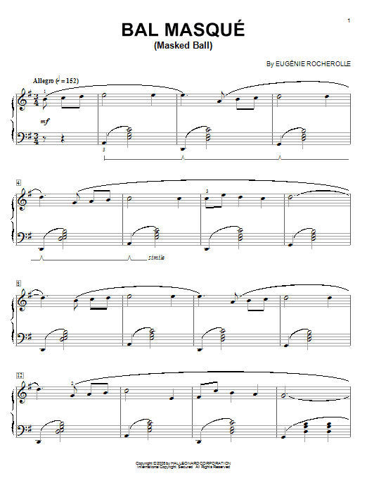 Download or print Eugénie Rocherolle Bal Masque (Masked Ball) sheet music, chords and digital score arranged for Piano Solo. This Classical score includes 4 page(s).