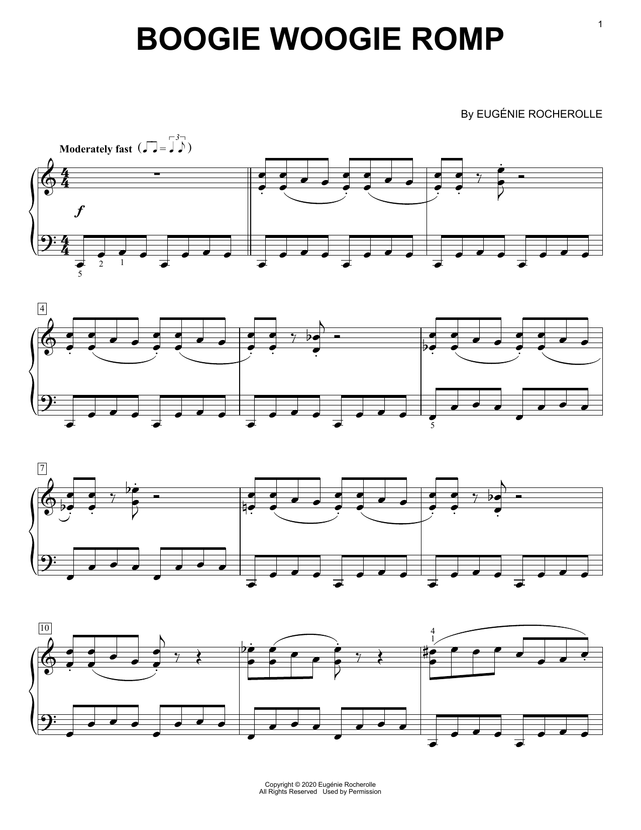 Download or print Eugénie Rocherolle Boogie Woogie Romp [Boogie-woogie version] sheet music, chords and digital score arranged for Piano Solo. This Children score includes 4 page(s).
