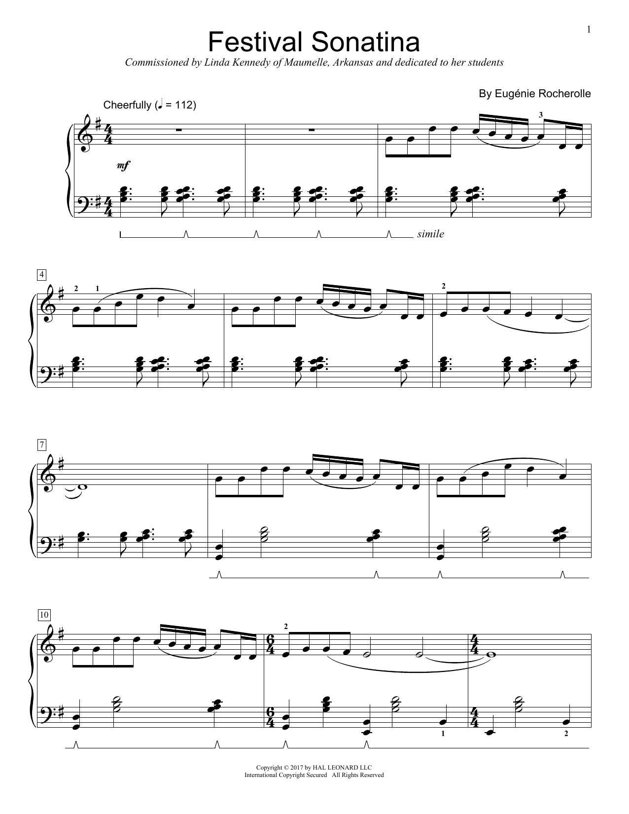 Download or print Eugénie Rocherolle Festival Sonatina sheet music, chords and digital score arranged for Educational Piano. This Instructional score includes 13 page(s).