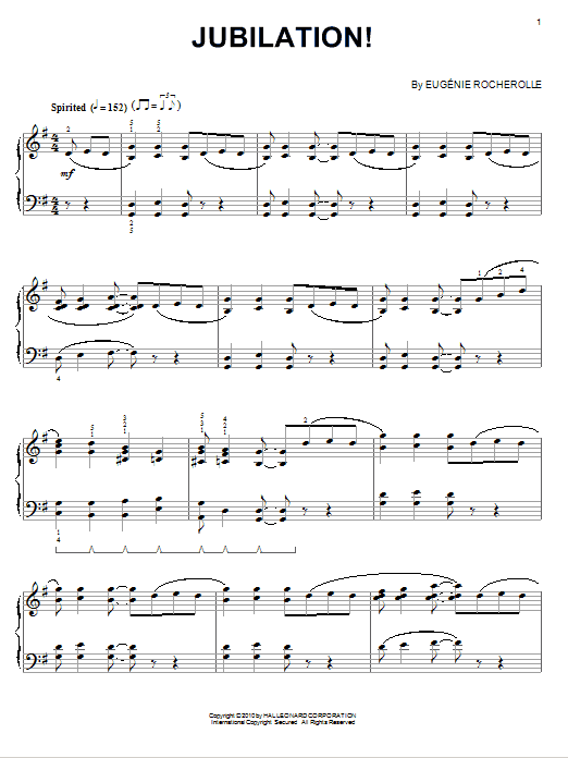 Download or print Eugénie Rocherolle Jubilation! sheet music, chords and digital score arranged for Piano Solo. This Jazz score includes 4 page(s).