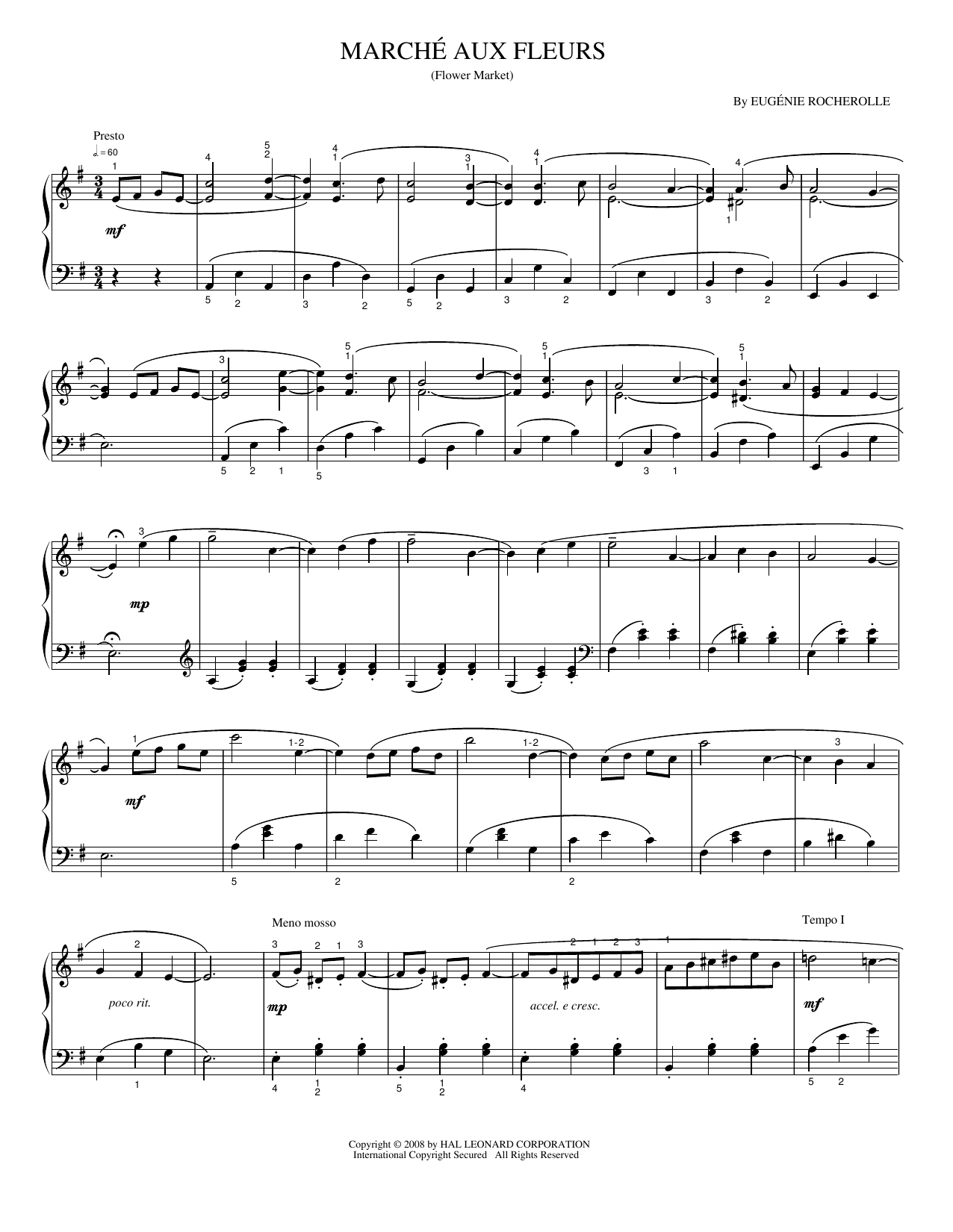 Download or print Eugénie Rocherolle Marché aux Fleurs sheet music, chords and digital score arranged for Piano Solo. This Instructional score includes 2 page(s).