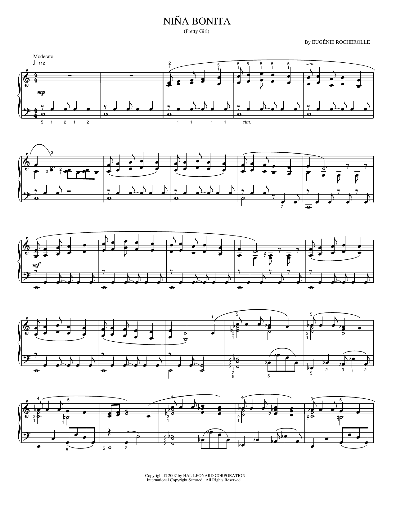 Download or print Eugénie Rocherolle Nina Bonita sheet music, chords and digital score arranged for Piano Solo. This Instructional score includes 3 page(s).