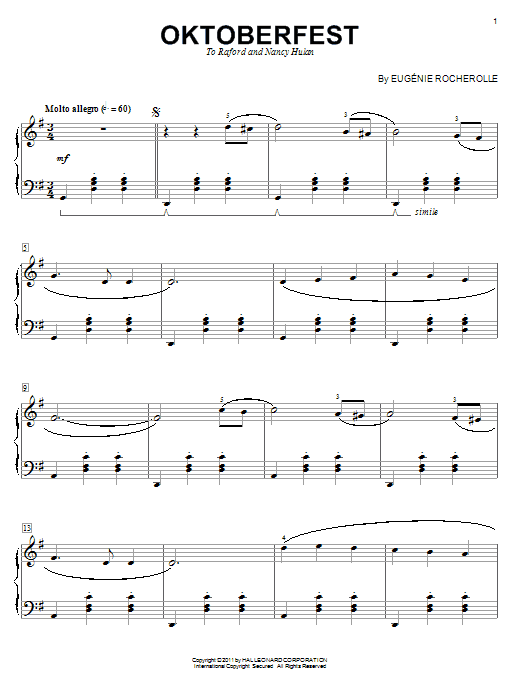 Download or print Eugénie Rocherolle Oktoberfest sheet music, chords and digital score arranged for Piano Solo. This Pop score includes 4 page(s).