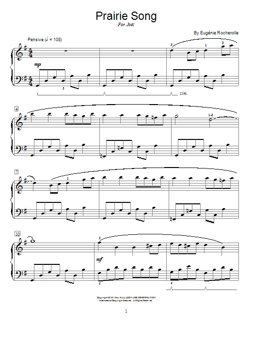 Download or print Eugénie Rocherolle Prairie Song sheet music, chords and digital score arranged for Educational Piano. This Pop score includes 3 page(s).