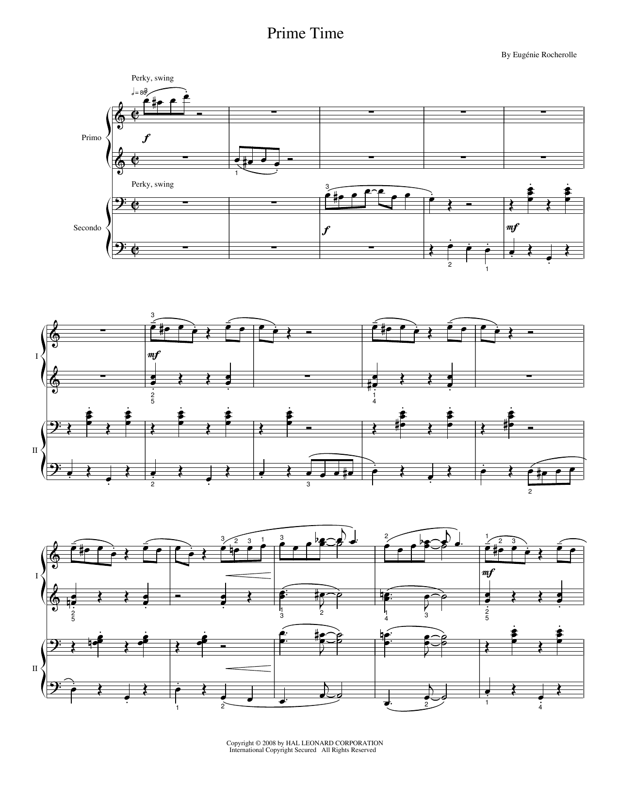 Download or print Eugénie Rocherolle Prime Time (DUET) sheet music, chords and digital score arranged for Piano Duet. This Instructional score includes 6 page(s).