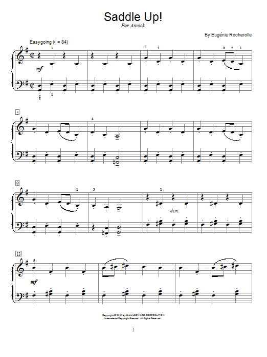 Download or print Eugénie Rocherolle Saddle Up! sheet music, chords and digital score arranged for Educational Piano. This Pop score includes 3 page(s).