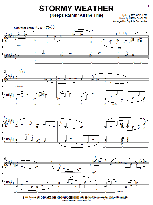 Download or print Eugénie Rocherolle Stormy Weather (Keeps Rainin' All The Time) sheet music, chords and digital score arranged for Piano Solo. This Film/TV score includes 3 page(s).