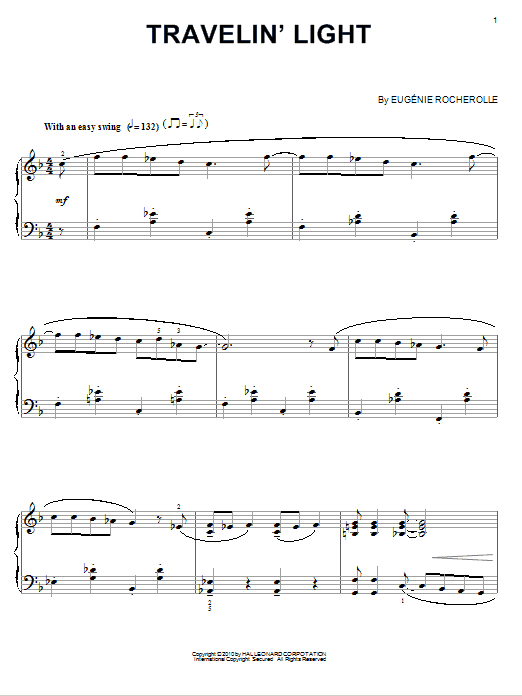 Download or print Eugénie Rocherolle Travelin' Light sheet music, chords and digital score arranged for Piano Solo. This Jazz score includes 6 page(s).