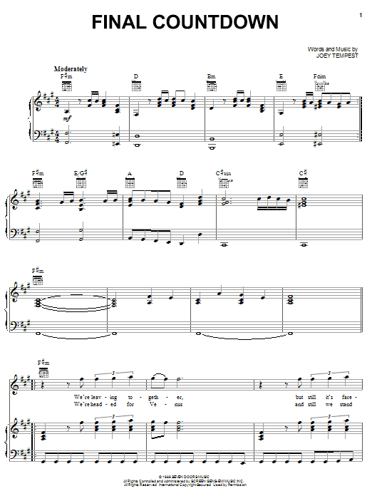 Download or print Europe Final Countdown sheet music, chords and digital score arranged for Solo Guitar. This Pop score includes 3 page(s).