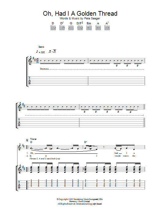 Download or print Eva Cassidy Oh, Had I A Golden Thread sheet music, chords and digital score arranged for Guitar Tab. This Folk score includes 6 page(s).