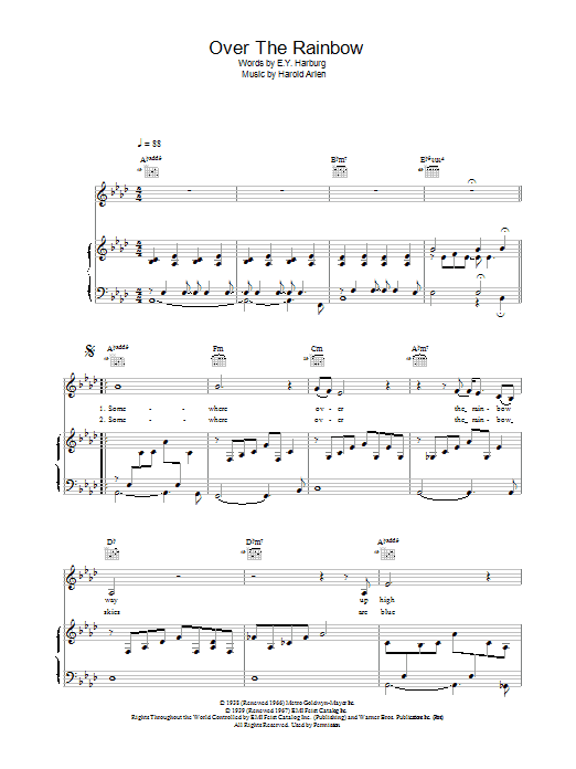 Download or print Eva Cassidy Over The Rainbow sheet music, chords and digital score arranged for Lead Sheet / Fake Book. This Jazz score includes 2 page(s).
