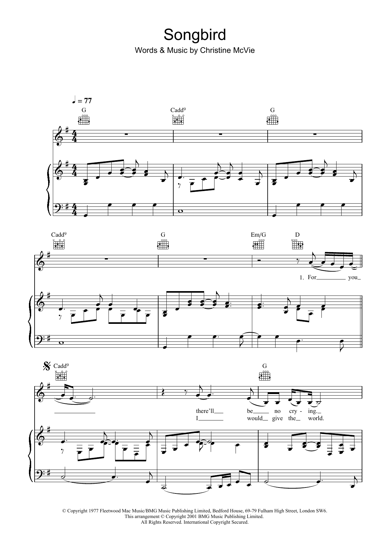 Download or print Eva Cassidy Songbird sheet music, chords and digital score arranged for Lead Sheet / Fake Book. This Pop score includes 3 page(s).