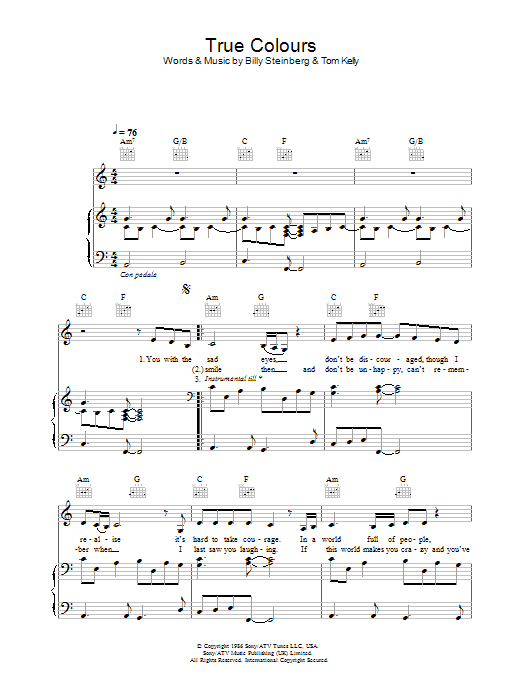 Download or print Eva Cassidy True Colours sheet music, chords and digital score arranged for Alto Sax Solo. This Pop score includes 3 page(s).