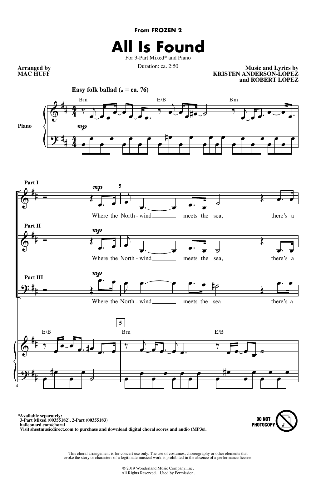 Quick facts All Is Found (from Disney's Frozen 2) (arr. Mac Huff) about digital sheet music
