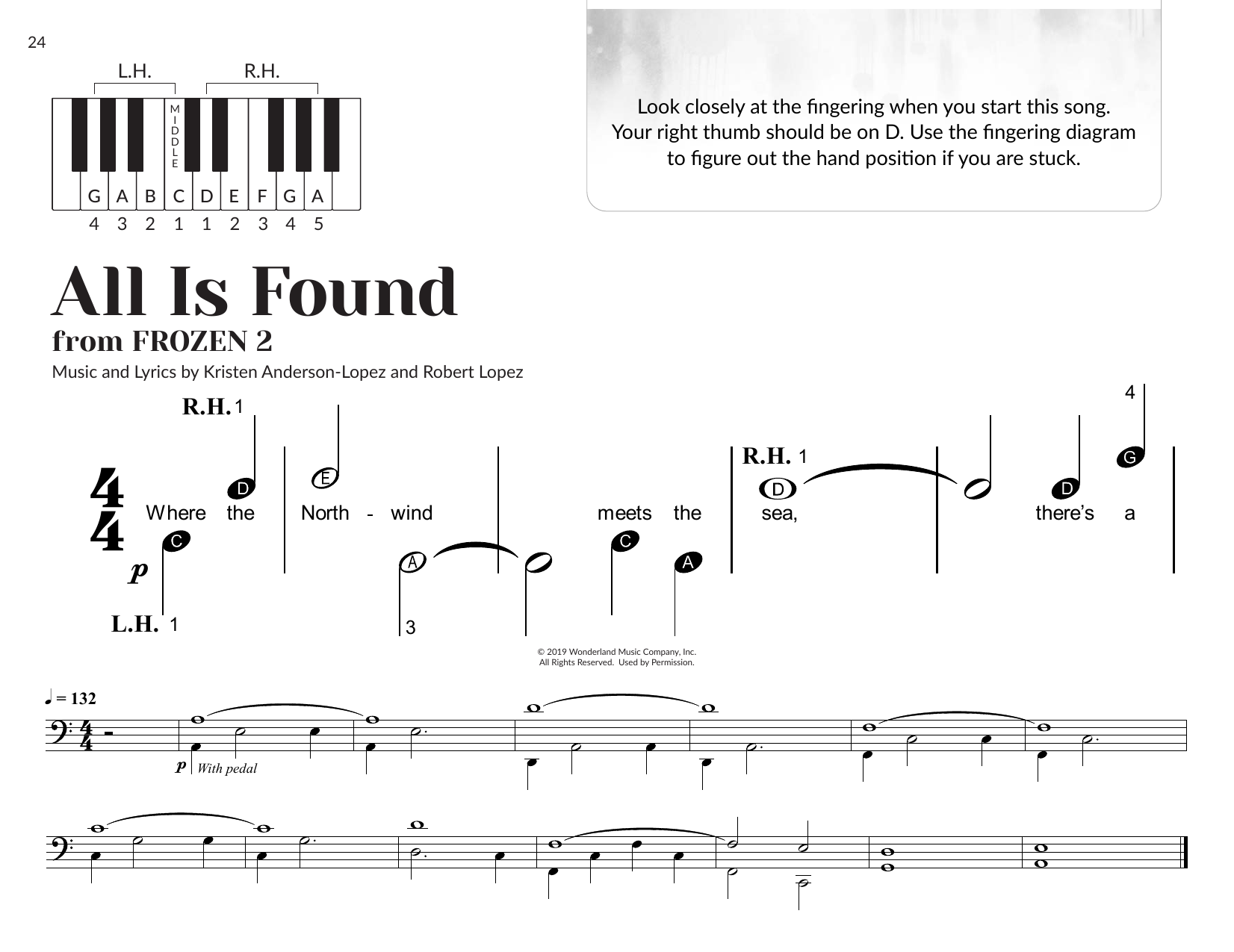 Download or print Evan Rachel Wood All Is Found (from Frozen 2) sheet music, chords and digital score arranged for Very Beginner Piano. This Disney score includes 2 page(s).