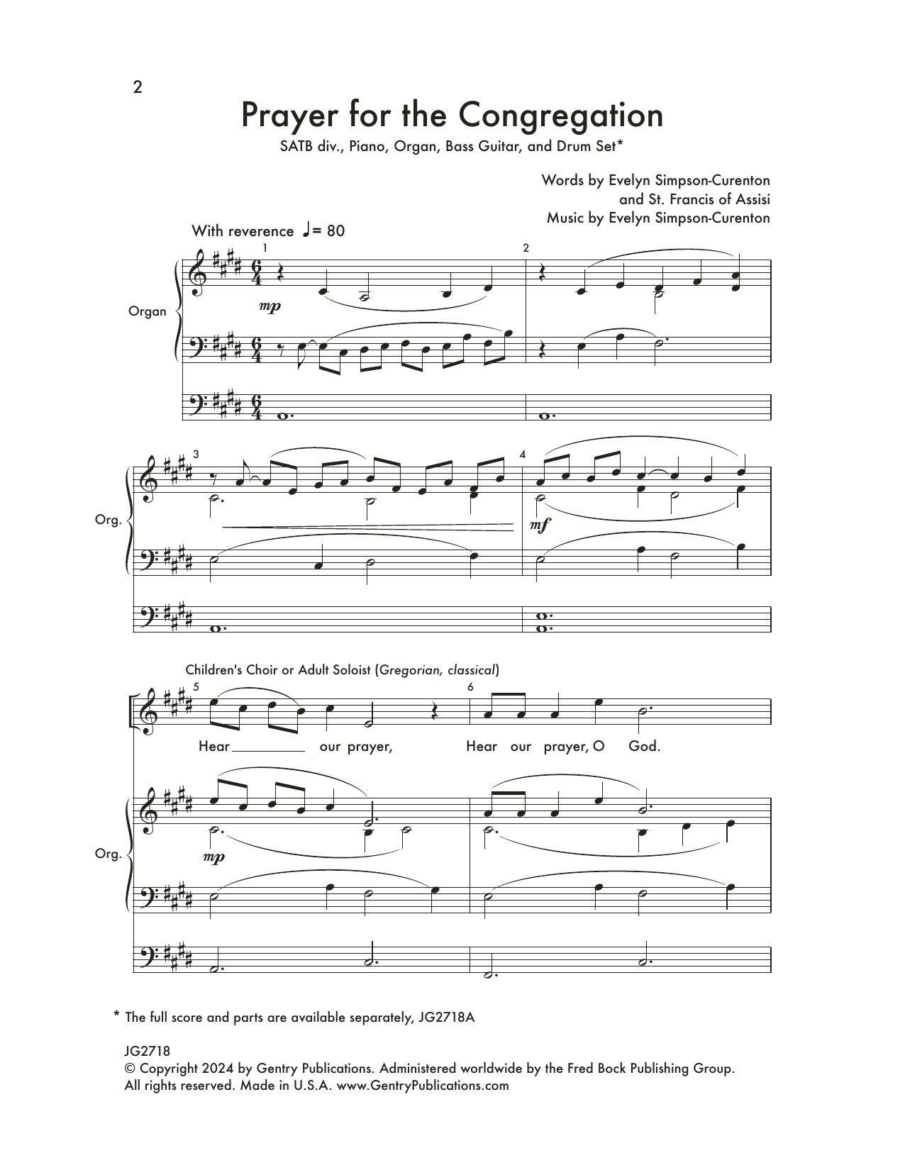 Download or print Evelyn Simpson-Curenton Prayer For The Congregation sheet music, chords and digital score arranged for Choir. This Concert score includes 11 page(s).