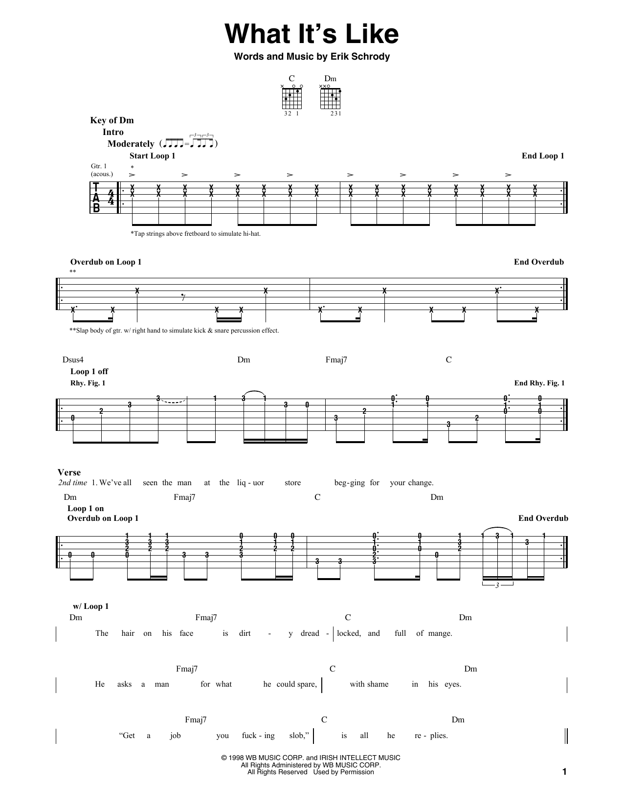 Download or print Everlast What's It Like sheet music, chords and digital score arranged for Guitar Lead Sheet. This Rock score includes 4 page(s).