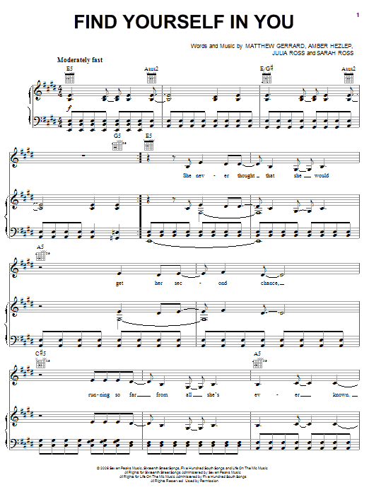 Download or print Everlife Find Yourself In You sheet music, chords and digital score arranged for Piano, Vocal & Guitar Chords (Right-Hand Melody). This Disney score includes 7 page(s).