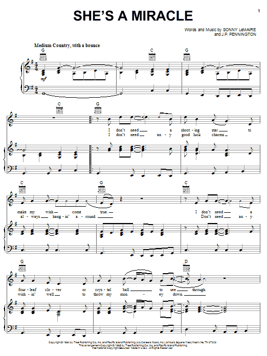 Download or print Exile She's A Miracle sheet music, chords and digital score arranged for Piano, Vocal & Guitar Chords (Right-Hand Melody). This Pop score includes 4 page(s).