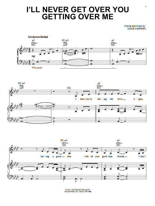 Download or print Expose I'll Never Get Over You Getting Over Me sheet music, chords and digital score arranged for Piano, Vocal & Guitar Chords (Right-Hand Melody). This Pop score includes 5 page(s).