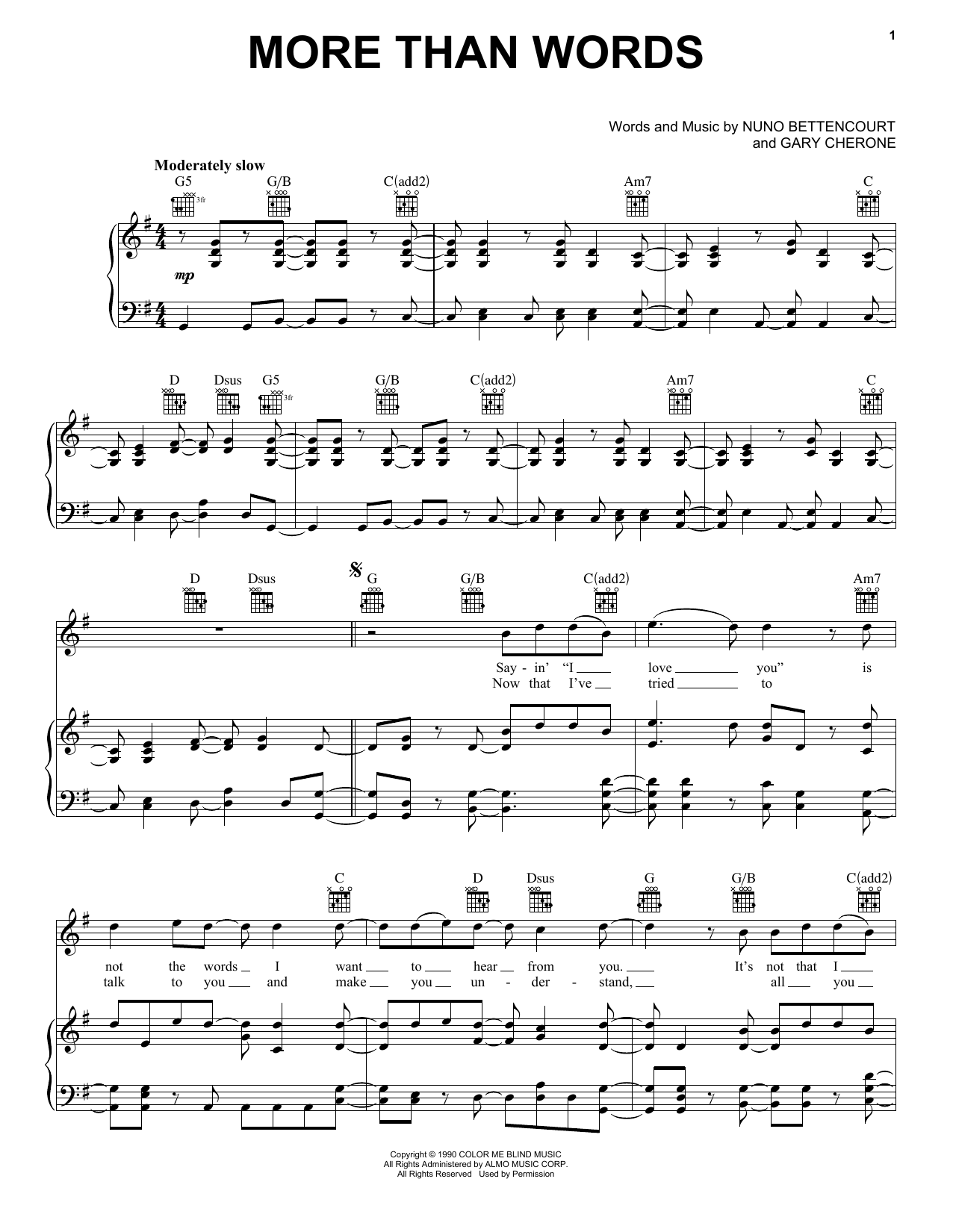 Download or print Extreme More Than Words sheet music, chords and digital score arranged for Solo Guitar. This Love score includes 5 page(s).