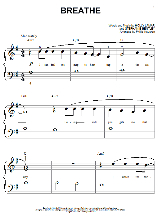 Download or print Faith Hill Breathe sheet music, chords and digital score arranged for Big Note Piano. This Pop score includes 5 page(s).