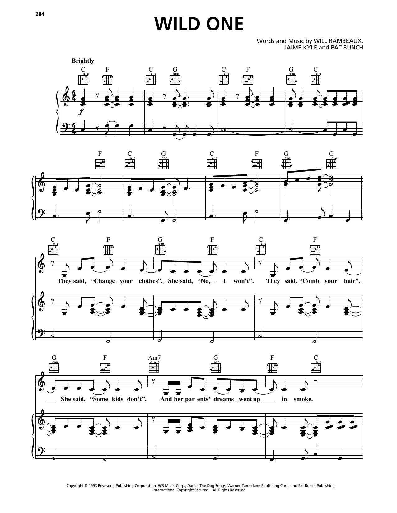 Download or print Faith Hill Wild One sheet music, chords and digital score arranged for Piano, Vocal & Guitar Chords (Right-Hand Melody). This Country score includes 5 page(s).