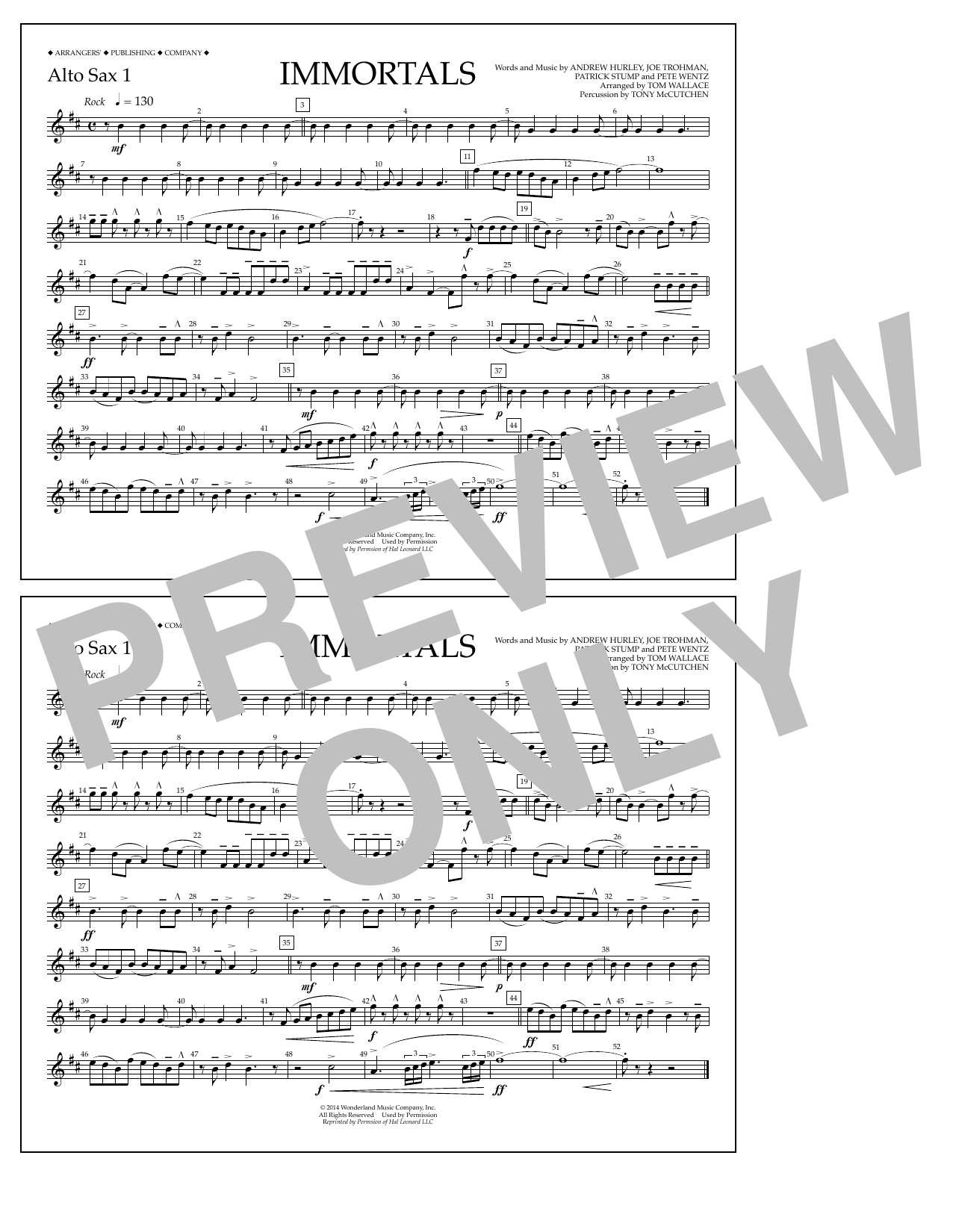 Download or print Fall Out Boy Immortals (from Big Hero 6) (arr. Tom Wallace) - Alto Sax 1 sheet music, chords and digital score arranged for Marching Band. This Disney score includes 1 page(s).