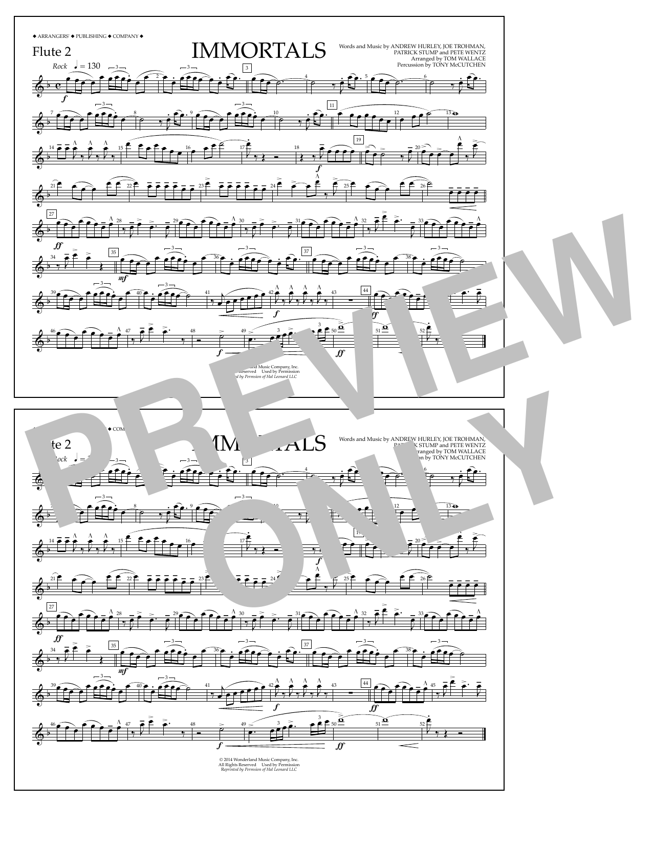 Download or print Fall Out Boy Immortals (from Big Hero 6) (arr. Tom Wallace) - Flute 2 sheet music, chords and digital score arranged for Marching Band. This Disney score includes 1 page(s).