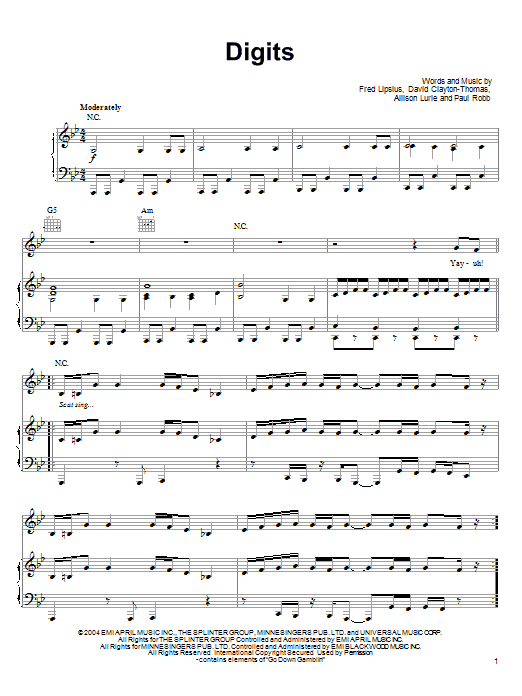 Download or print Fan3 Digits sheet music, chords and digital score arranged for Piano, Vocal & Guitar Chords (Right-Hand Melody). This Film/TV score includes 9 page(s).