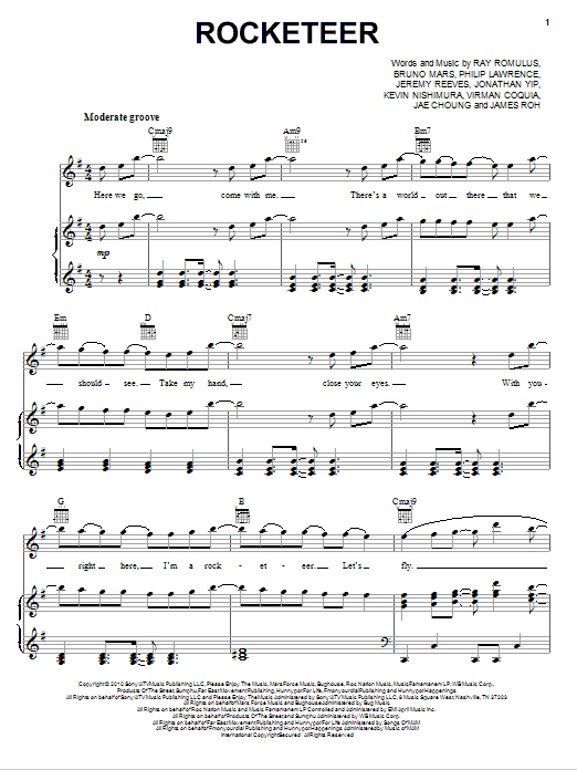 Download or print Far East Movement Rocketeer sheet music, chords and digital score arranged for Piano, Vocal & Guitar Chords (Right-Hand Melody). This Pop score includes 8 page(s).