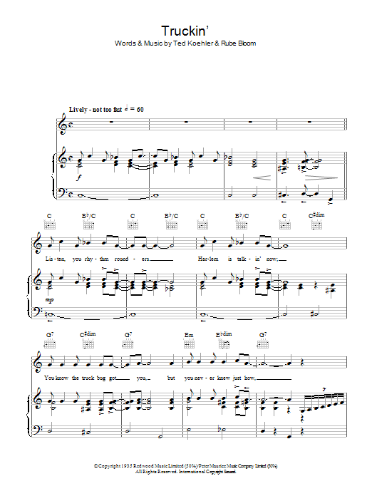 Download or print Thomas 'Fats' Waller Truckin' sheet music, chords and digital score arranged for Piano, Vocal & Guitar Chords. This Standards score includes 4 page(s).