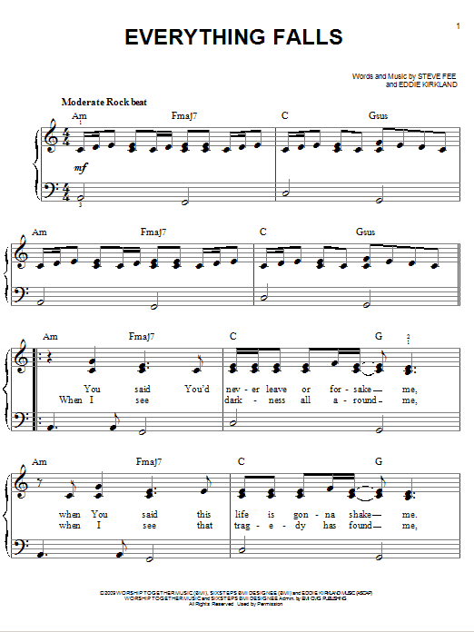 Download or print Fee Everything Falls sheet music, chords and digital score arranged for Easy Piano. This Pop score includes 6 page(s).