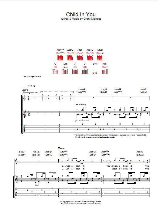 Download or print Feeder Child In You sheet music, chords and digital score arranged for Guitar Tab. This Pop score includes 5 page(s).