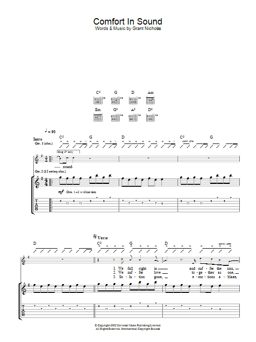 Download or print Feeder Comfort In Sound sheet music, chords and digital score arranged for Guitar Tab. This Pop score includes 4 page(s).