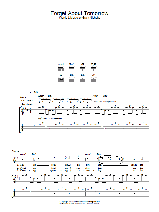 Download or print Feeder Forget About Tomorrow sheet music, chords and digital score arranged for Lead Sheet / Fake Book. This Pop score includes 4 page(s).