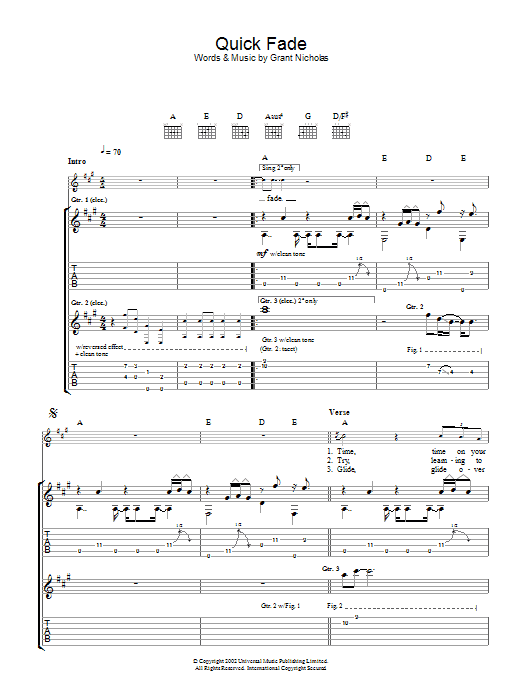 Download or print Feeder Quick Fade sheet music, chords and digital score arranged for Guitar Tab. This Pop score includes 7 page(s).