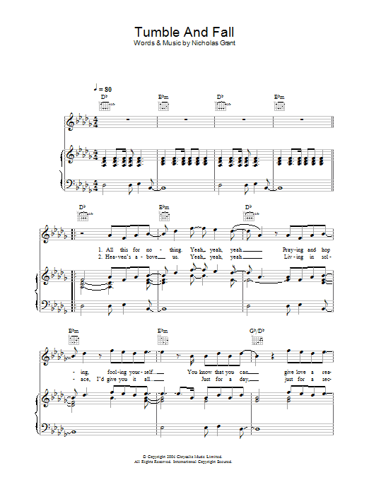 Download or print Feeder Tumble And Fall sheet music, chords and digital score arranged for Piano, Vocal & Guitar Chords. This Rock score includes 5 page(s).