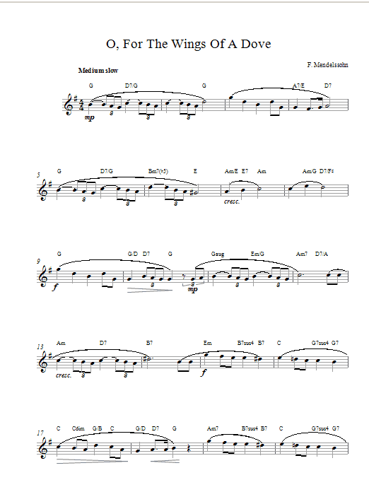 Download or print Felix Mendelssohn O For The Wings Of A Dove sheet music, chords and digital score arranged for Piano & Vocal. This Classical score includes 4 page(s).
