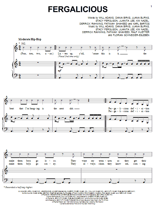 Download or print Fergie Fergalicious sheet music, chords and digital score arranged for Piano, Vocal & Guitar Chords (Right-Hand Melody). This Pop score includes 10 page(s).