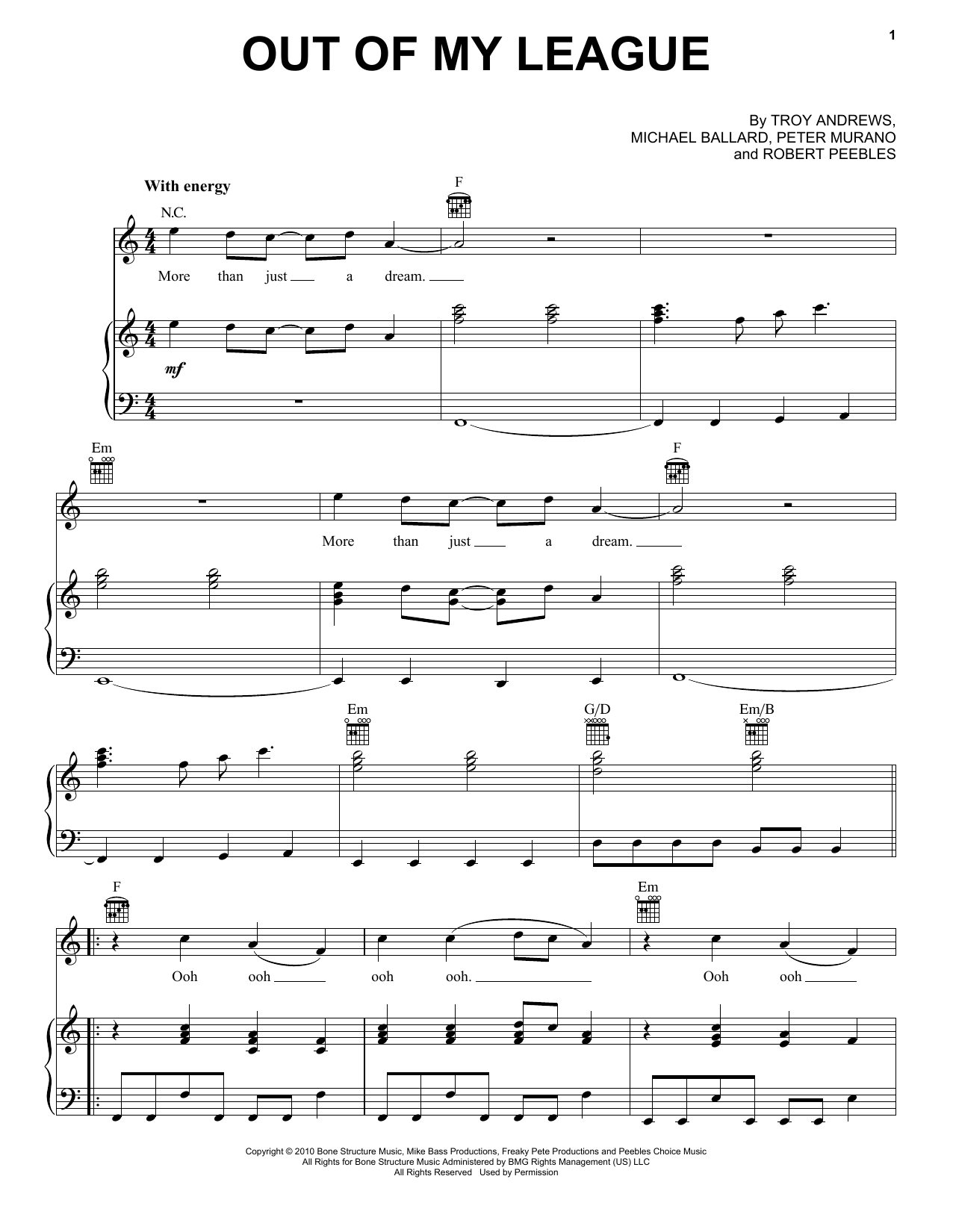 Download or print Fitz And The Tantrums Out Of My League sheet music, chords and digital score arranged for Piano, Vocal & Guitar Chords (Right-Hand Melody). This Pop score includes 7 page(s).