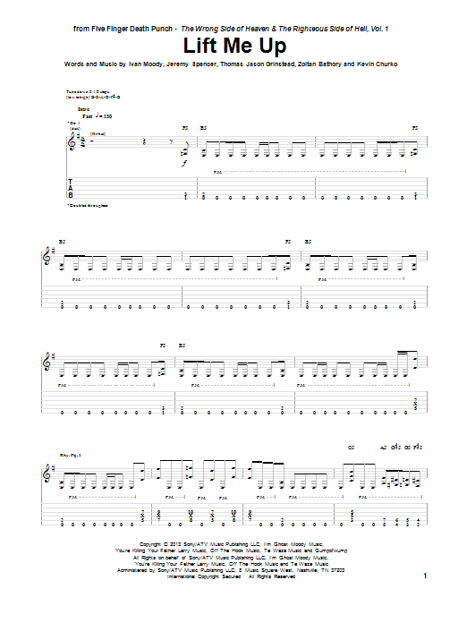 Download or print Five Finger Death Punch Lift Me Up sheet music, chords and digital score arranged for Guitar Tab. This Pop score includes 7 page(s).