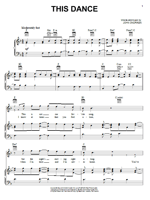 Download or print Five For Fighting This Dance sheet music, chords and digital score arranged for Piano, Vocal & Guitar Chords (Right-Hand Melody). This Pop score includes 8 page(s).