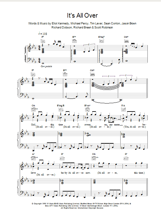 Download or print Five Its All Over sheet music, chords and digital score arranged for Piano, Vocal & Guitar Chords. This Pop score includes 6 page(s).