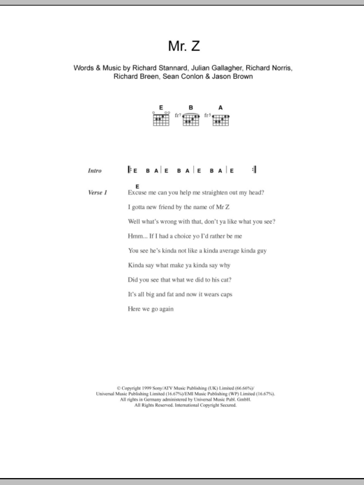 Download or print Five Mr. Z sheet music, chords and digital score arranged for Guitar Chords/Lyrics. This Pop score includes 2 page(s).