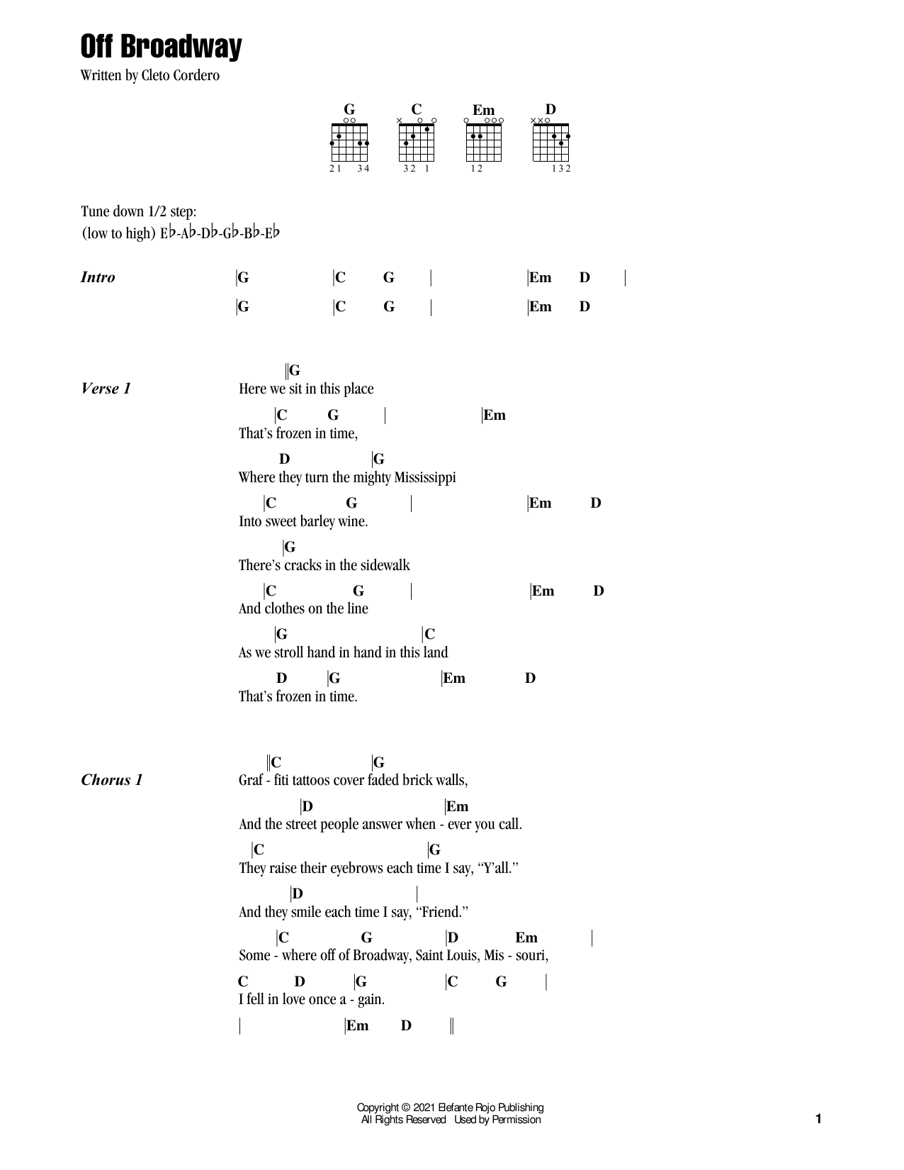 Download or print Flatland Cavalry Off Broadway sheet music, chords and digital score arranged for Guitar Chords/Lyrics. This Country score includes 2 page(s).