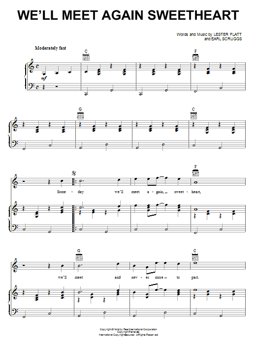 Download or print Flatt & Scruggs We'll Meet Again Sweetheart sheet music, chords and digital score arranged for Real Book – Melody, Lyrics & Chords. This Jazz score includes 1 page(s).