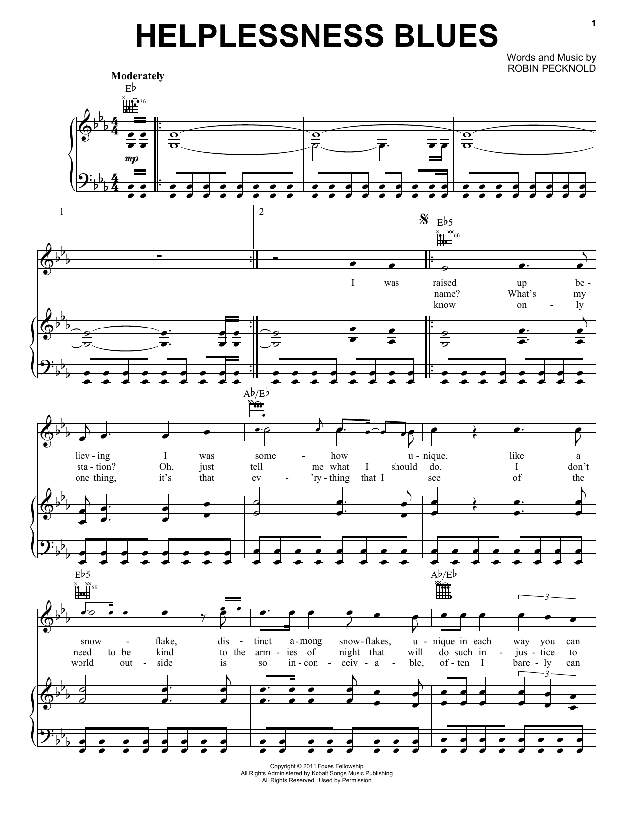 Download or print Fleet Foxes Helplessness Blues sheet music, chords and digital score arranged for Guitar Tab. This Folk score includes 11 page(s).