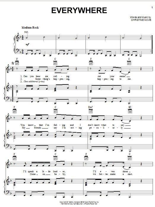 Download or print Fleetwood Mac Everywhere sheet music, chords and digital score arranged for Easy Guitar Tab. This Pop score includes 3 page(s).